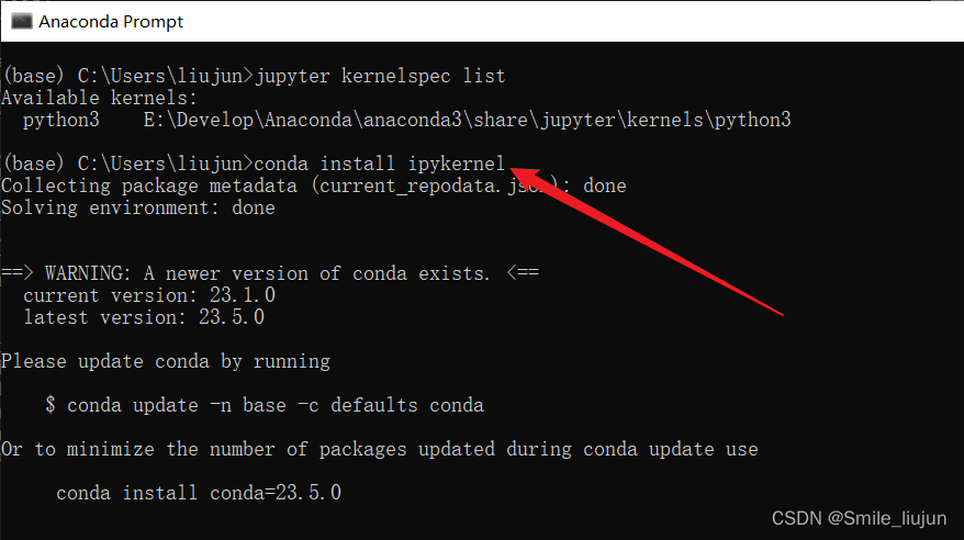 - 2.安装ipykernel,输入【conda install ipykernel】;