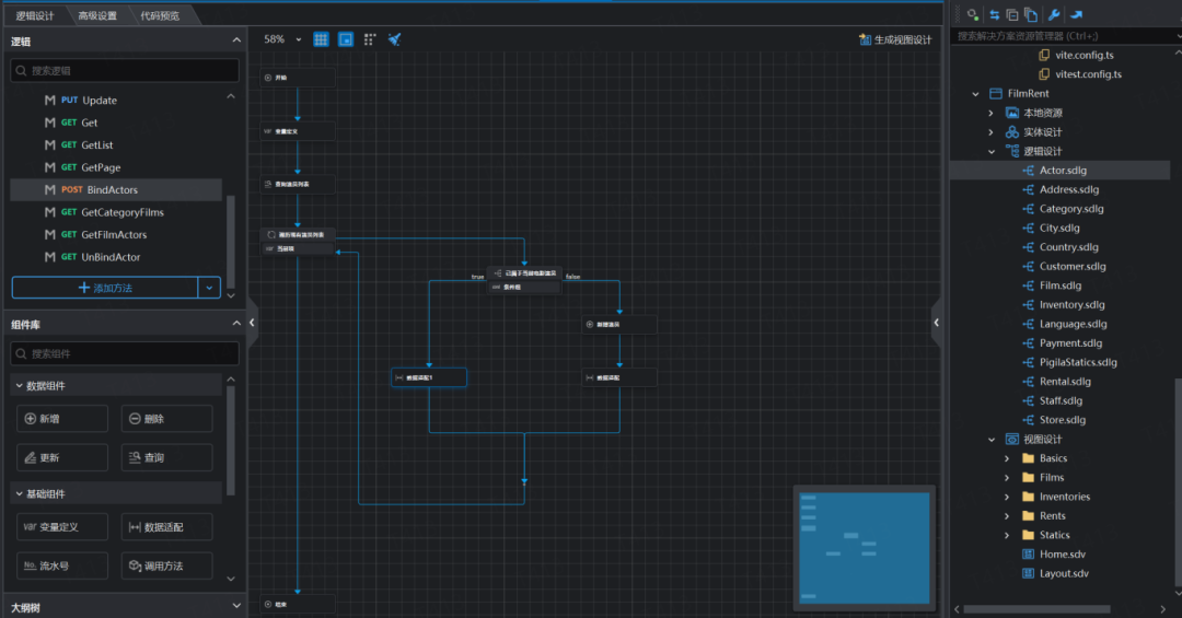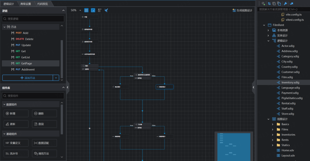 以下通过Rental、Inventory、Actor三个典型逻辑,展示逻辑设计器如何把电影租赁的复杂业务变简单。