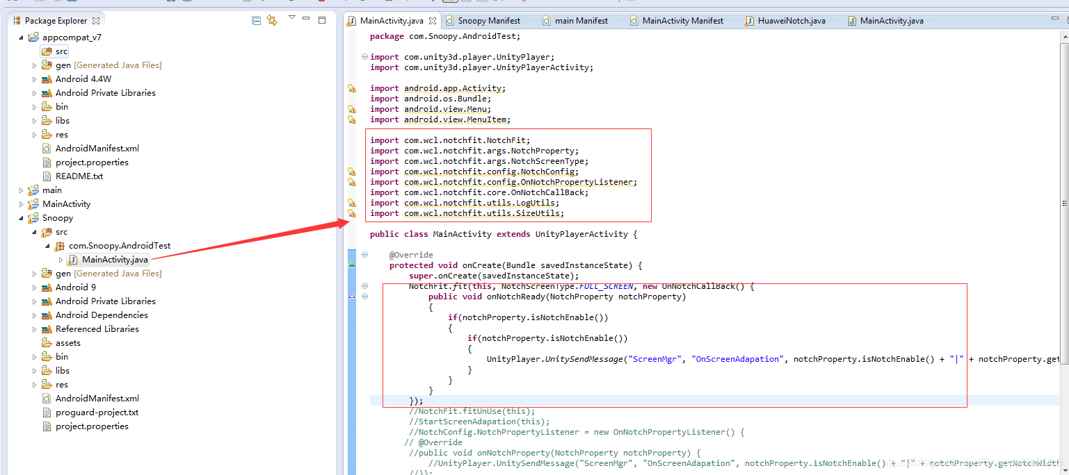 UnityPlayer.UnitySendMessage("ScreenMgr", "OnScreenAdapation", notchProperty.isNotchEnable() + "|" + notchProperty.getNotchWidth() + "|"+notchProperty.getNotchHeight());