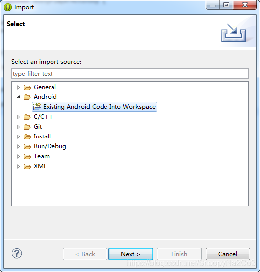2.打开eclipse工程(我的工程基于上面安卓接入的工程)在工程下面右键->import