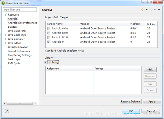 先选个安卓版本,一定要最新的,然后把Is Library勾上