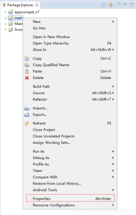6.然后点击main工程右键Properties