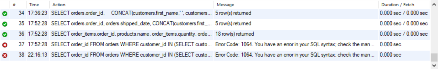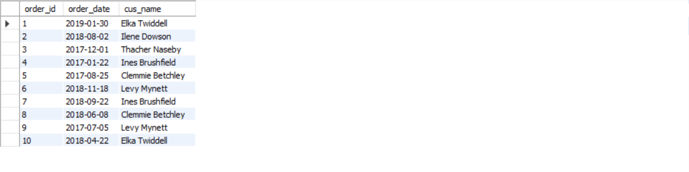SELECT orders.order_id, orders.order_date, CONCAT(customers.first_name, ' ', customers.last_name) AS cus_name