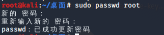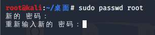1.输入sudo passwd root按回车,随后设置新的密码。