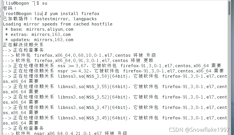 本文详细介绍了如何在Linux系统中修改root密码,包括通过启动时的安全模式来更改,以及使用yum命令安装Firefox浏览器的过程。步骤包括使用sudo passwd命令,重启后进入救援模式,以及在救援模式下修改密码。此外,还展示了如何使用yum install命令安装和更新Firefox软件。