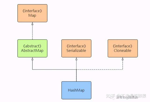 HashMap属于Map集合体系的一部分,同时继承了Serializable接口可以被序列化,继承了Cloneable接口可以被复制。他的的继承结构如下: