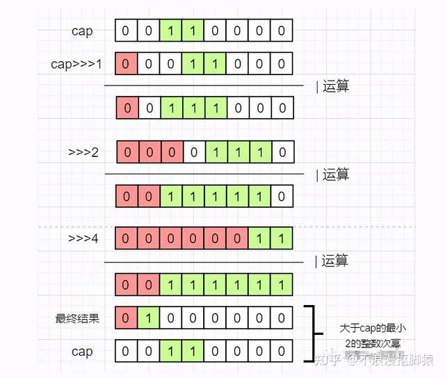 那为什么必须要对cap进行-1之后再进行运算呢?如果指定的数刚好是2的整数次幂,如果没有-1结果会变成比他大两倍的数,如下: