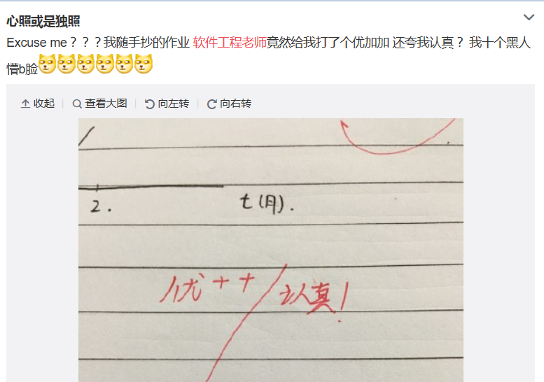这个约束也是双方面的, 如果老师对学生的作业敷衍了事,像下面这个例子, 这位老师的“师德”有多少?底线是否比学生高呢?