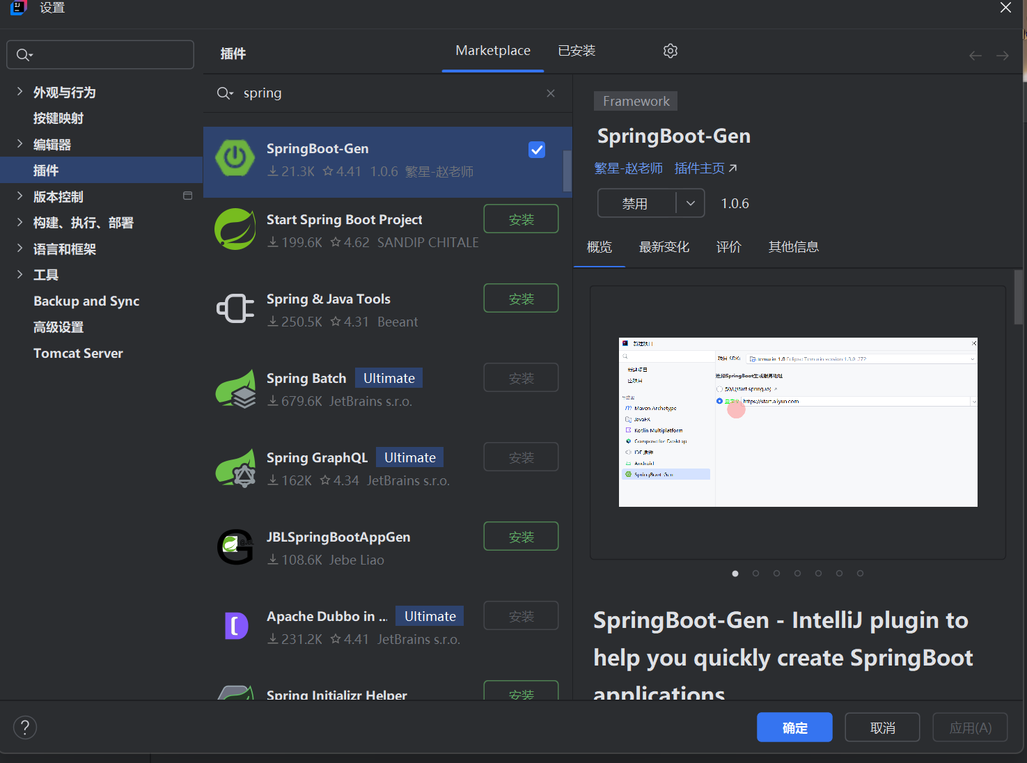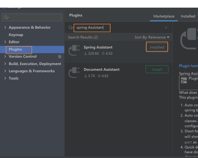 其他文章显示的spring Assistant, 我的Plugins里面没有找到,只有个spring boot Assistant