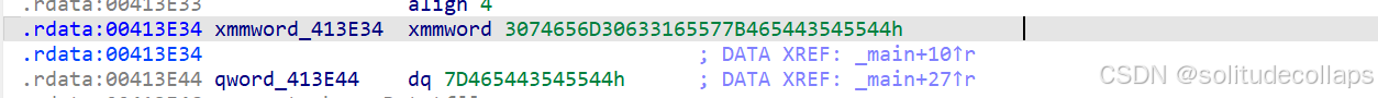 (const __m128i *)&xmmword_413E34:这是一个类型转换表达式,将内存地址xmmword_413E34转换为const __m128i *类型的指针。xmmword_413E34是一个内存地址,通常是一个标签或变量名,表示要加载的数据的起始位置。