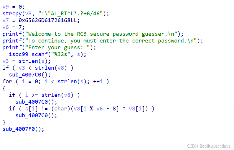 s[i] != (char)(v8[i % v6 - 8] ^ v8[i]) )