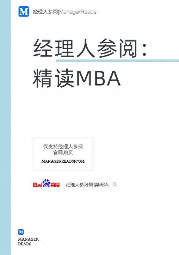 在此,首先推荐大家去读一下《经理人参阅:精读MBA》这本专业书籍。