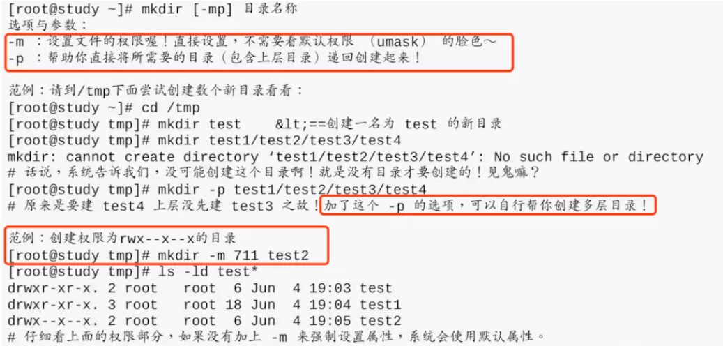 当使用-p选项时,前面的父目录已经存在,系统也不会显示错误信息。但注意使用-p一定检查目录拼写是否正确,否则创建的目录会乱七八糟。