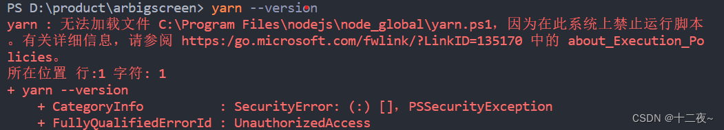 yarn使用报错:无法加载文件 C:\Program Files\nodejs\npm.ps1,因为在此系统上禁止运行脚本_51CTO博客_yarn无法启动