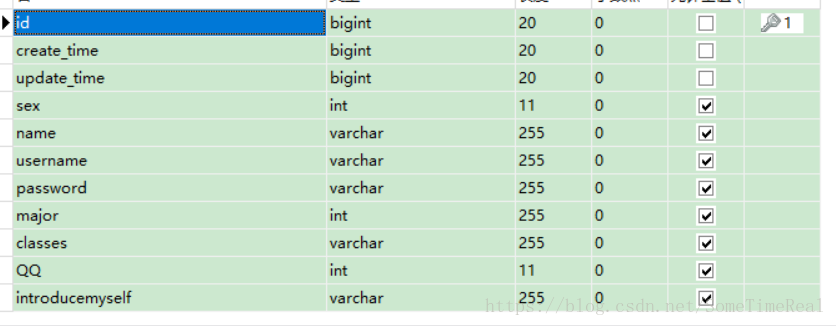 其中注意:为了防止中文乱码我们需要在创建表的时候在选项卡,把字符类型设置成为utf-8
