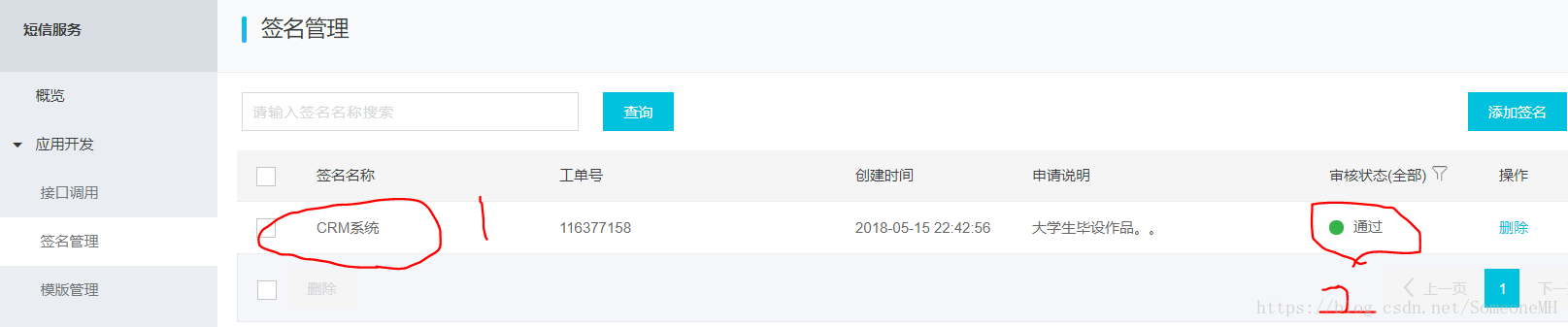 注意:短信签名和短信模板创建后都需要通过审核,审核一般在几个小时内就能完成。