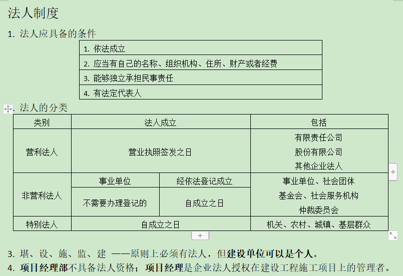 4.项目经理部不具备法人资格;项目经理是企业法人授权在建设工程施工项目上的管理者。