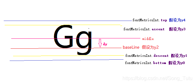 bottom:是baseLine到最低字符的最低处的距离 ps:为正值