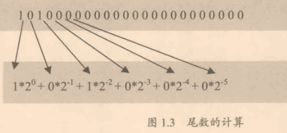尾数位表示2的指数次幂的和,每一位表示求和数列中的对应项是否为0,这里表示: