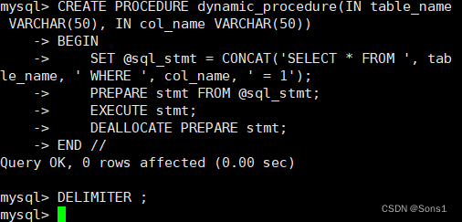 CREATE PROCEDURE dynamic_procedure(IN table_name VARCHAR(50), IN col_name VARCHAR(50))