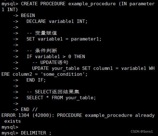 CREATE PROCEDURE example_procedure (IN parameter1 INT)