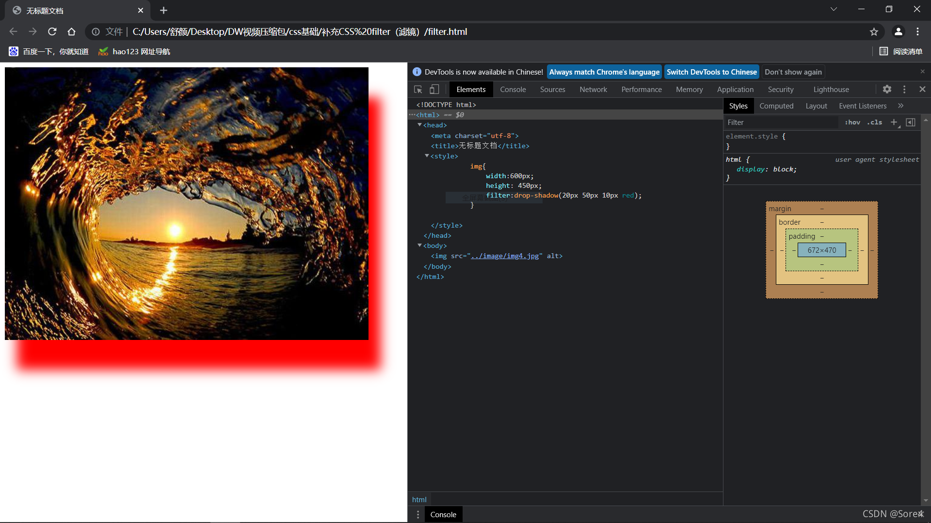 filter 属性定义了元素(通常是<img>)的可视效果(例如:模糊与饱和度)。
