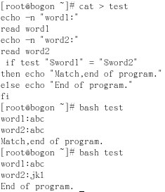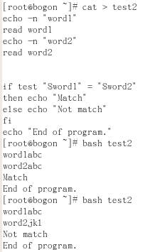 4、修改上述程序,编程提示用户输入两个单词,并将其读入,然后比较这两个单词,如果两个单词相同显示“Match”,不同则显示“Not match”,最后显示“End of program”。<编程提示>请使用if…then…else 控制结构。