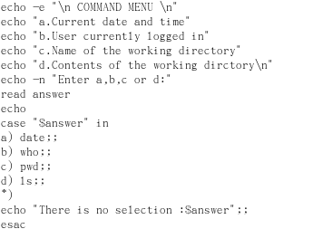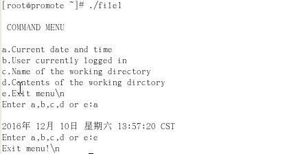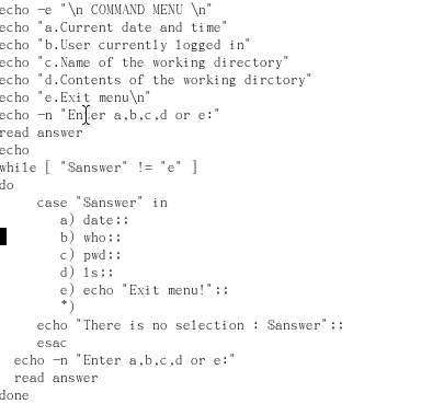 5、编程使用case 结构创建一个简单的菜单,屏幕显示菜单: