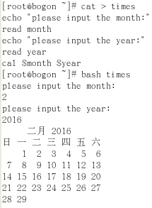 2、用Shell 语言编制一Shell 程序,该程序在用户输入年、月之后,自动打印输出该年该月的日历。