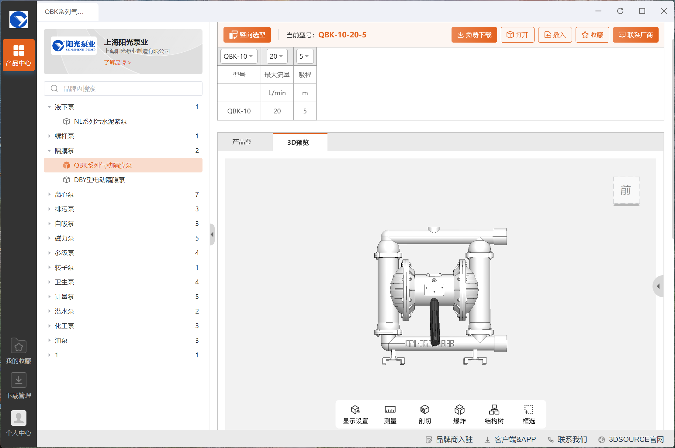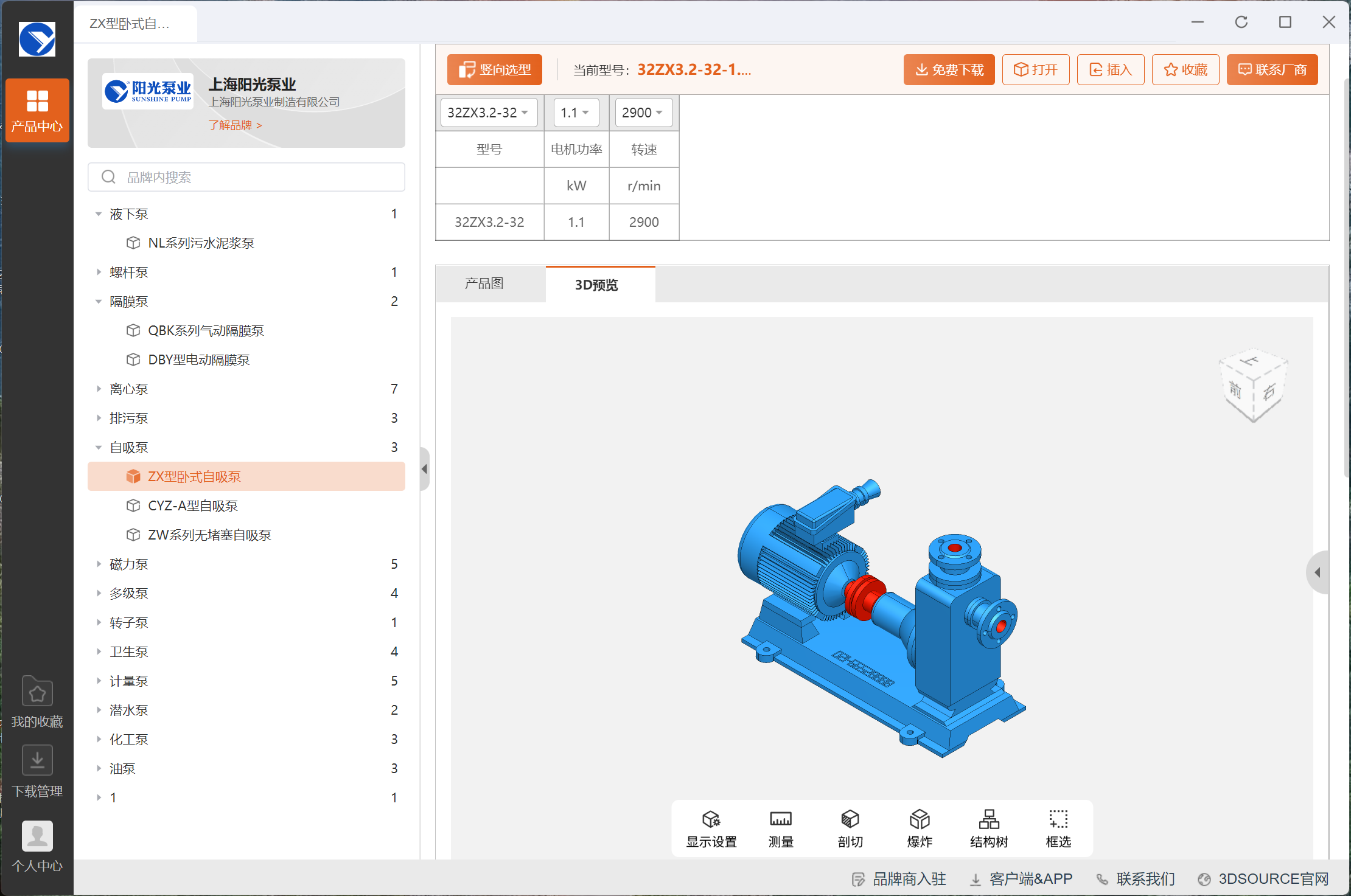 1、阳光泵业选型软件专为机械设计师打造,可以在软件找到阳光泵业产品模型