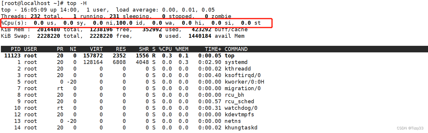 - sy:(system)内核占用百分比