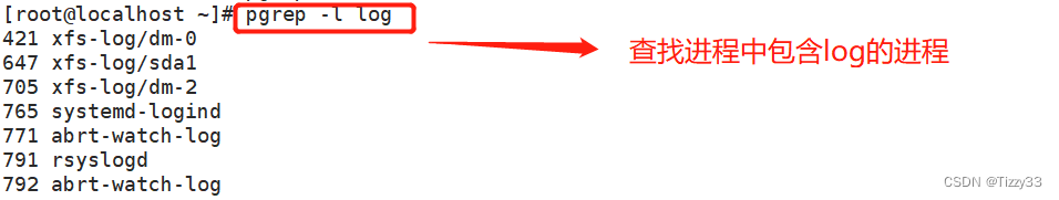 - pgrep -l 查找进程中包含log的进程 长目录显示
