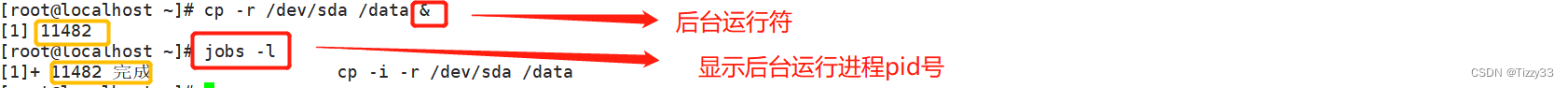 - jobs -l:显示所有后台运行进程的pid号