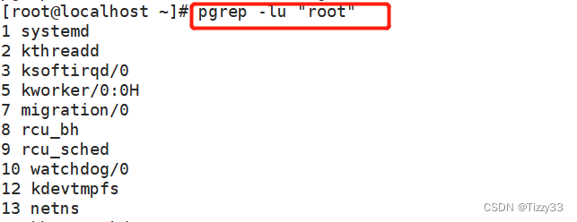 - pgrep -lu“用户名” 查看指定用户名下的进程