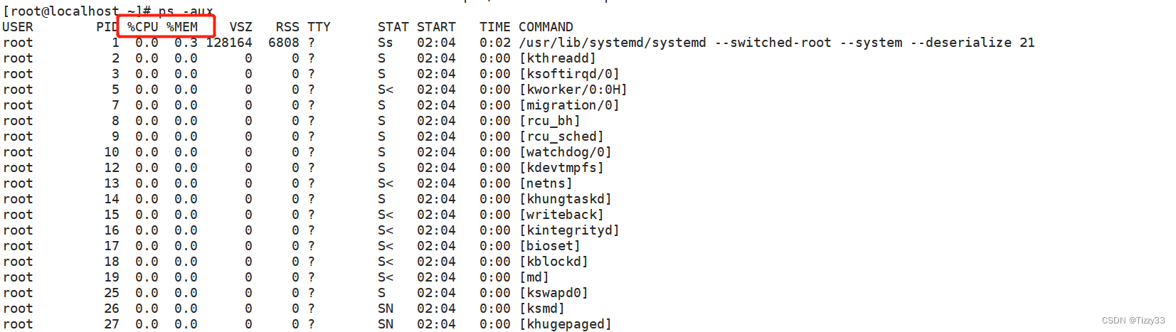 - STAT:优先级表示(S:高级别 T:低级别 L:多个线程 Ss:有子进程)