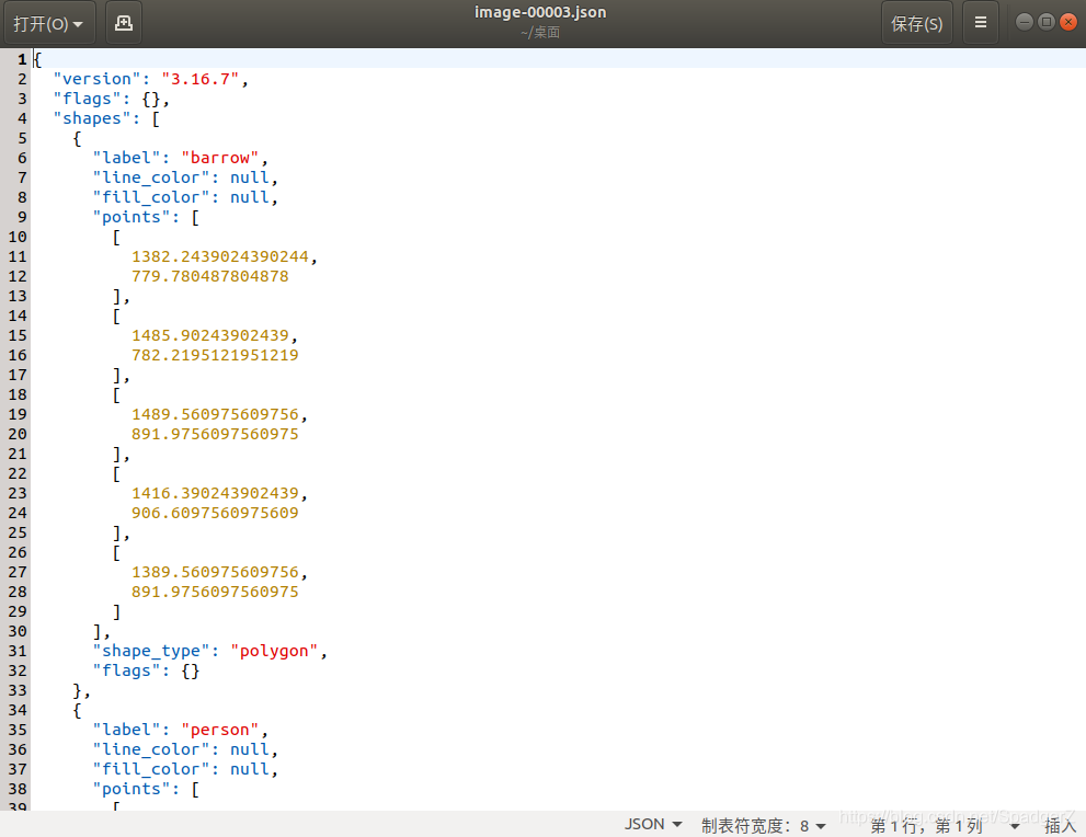 3)确认标注结束后,点击“save”按钮,会生成一个json文件