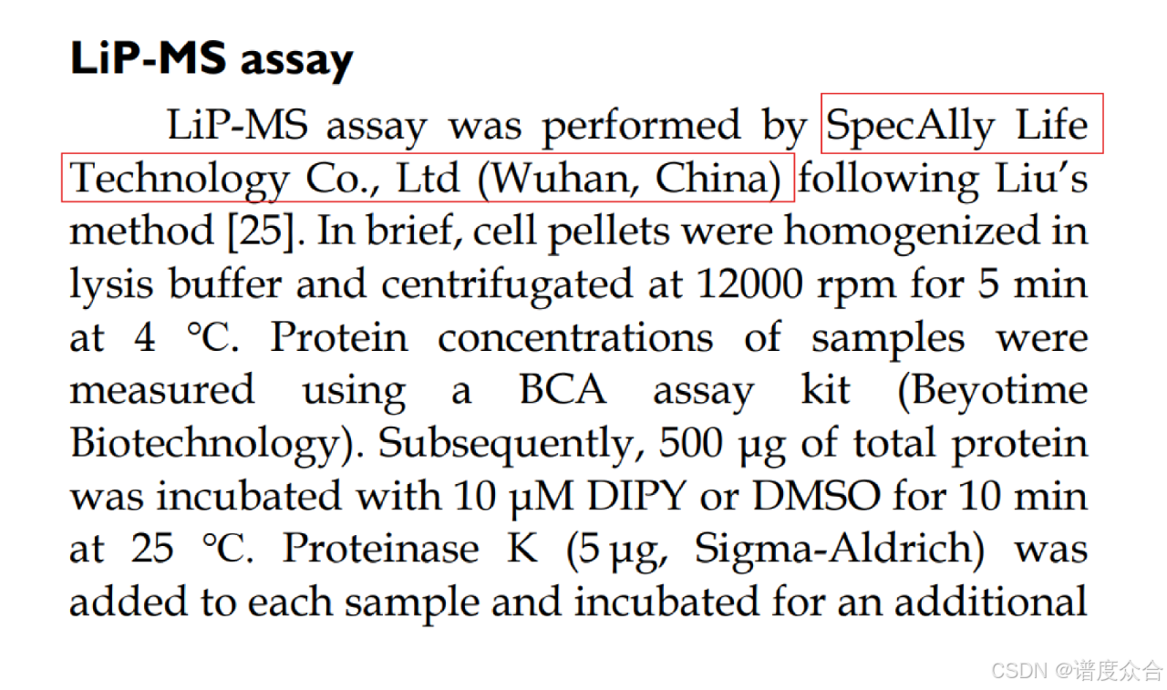 本文由谱度众合“生物标志物发现与药物靶点筛选平台”(该平台被认定为“国家生物产业基地公共服务平台”)利用LiP-MS技术完成药物靶点筛选的工作。