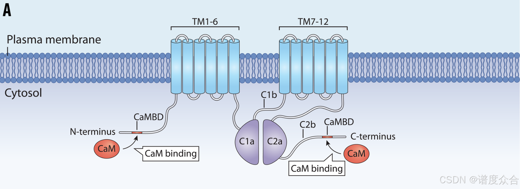 膜蛋白腺苷酸环化酶8(AC8)与钙调蛋白(CaM)的相互作用图