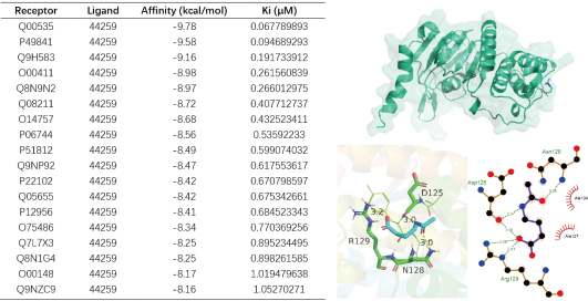 对潜在靶蛋白与药物分子进行分子对接,在计算机模拟层面对药物靶点进行验证。