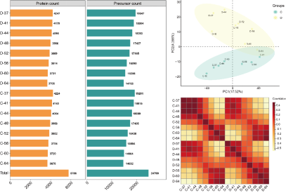 展示项目定量到的unique肽段数目及其归属的unique蛋白。TPP实验中蛋白鉴定和定量水平会呈现出温度梯度变化。