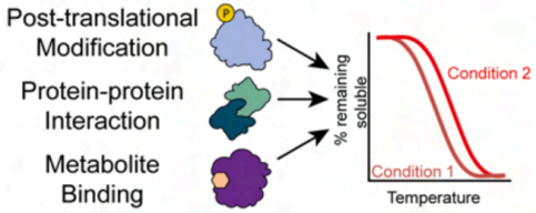 进一步地,研究者们发现热位移现象也适用于细胞、组织等复杂体系(图2)。将这一原理与高通量蛋白质检测技术相结合,形成了热蛋白组分析技术(Thermal Proteome Profiling,TPP)。