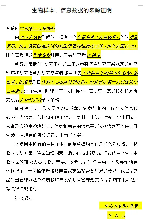 本部分内容记录临床样本及信息数据获取的具体医院科室来源,注明允许研究范围,保证其合法性与授权链条完整性,确保不侵犯个人隐私、不涉及非法交易。
