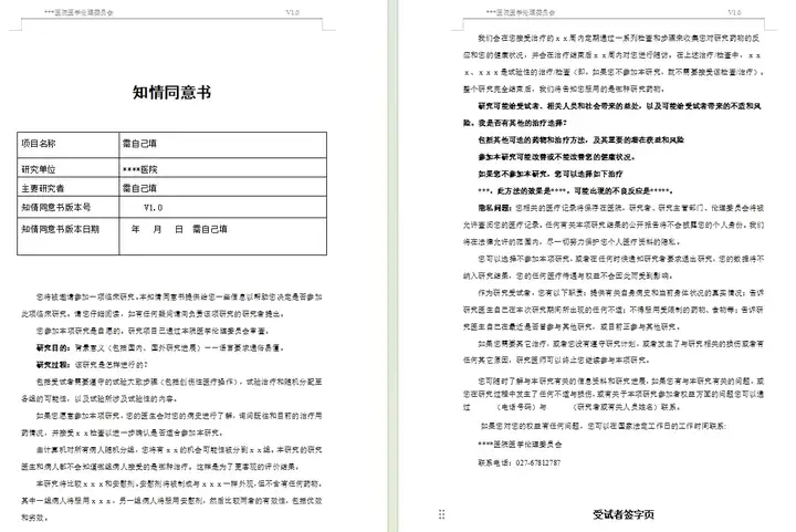 此外,为确保受试者在充分理解前提下自愿参与研究,需要注意在知情同意书中禁用专业术语(如将“随机分组”改为“抽签决定用药种类”)。以及,并明确告知退出机制“您可随时退出研究,医生将继续为您提供最佳标准化治疗方案”。