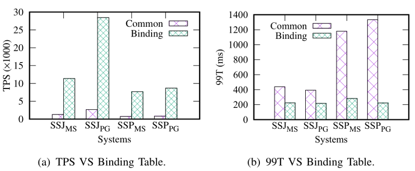 使用 TPCC 进行比较,TPCC 提供了五个场景,每个场景的比例是固定的,所以我们只给出整体表现。如图 11 可看出 SSJ 效果最好。
