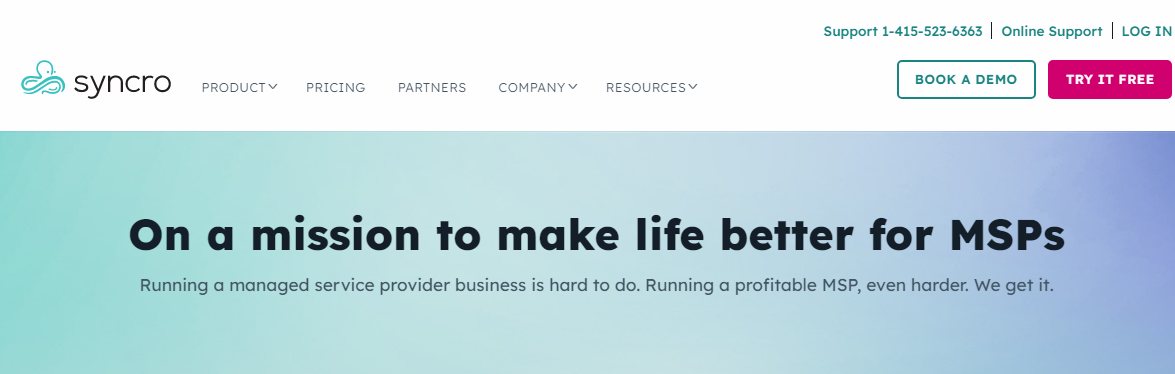 Syncro 的 PSA、RMM、远程支持一体化软件可帮助托管服务提供商提高运营效率,增加营业收入。定价非常简单,不需要签订合同,所有功能只需支付固定费用。Syncro 是一家以人为本的科技公司,秉持多元化、包容性、公平公正的原则,致力于使客户、员工乃至整个行业从中受益。