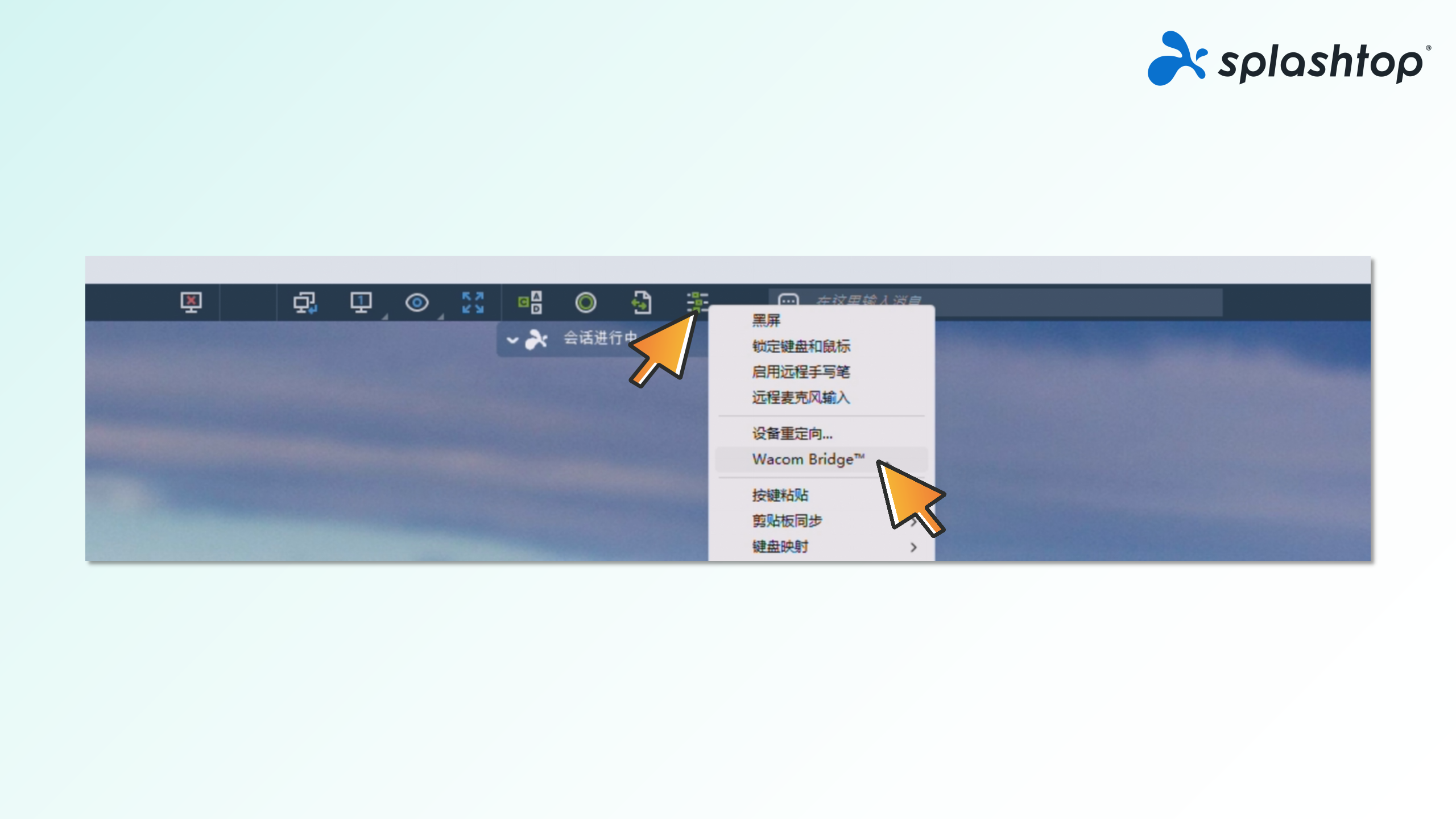 2. 建立远程连接后,点击工具栏【操作】>【Wacom Bridge】,即可启用 Wacom Bridge。