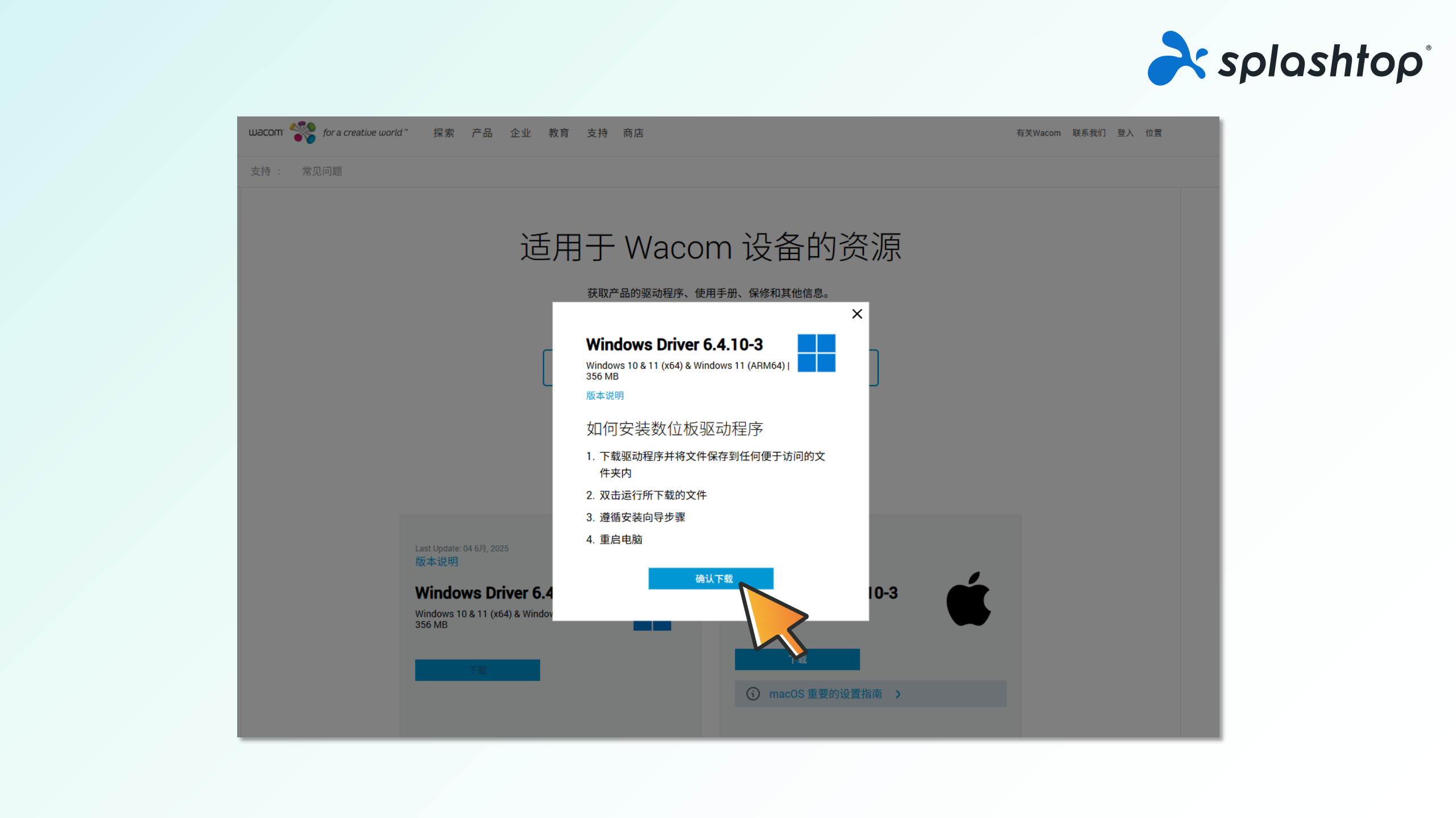 1. 访问 Wacom 官网,在本地和远程电脑上下载并安装 Wacom 最新驱动程序。