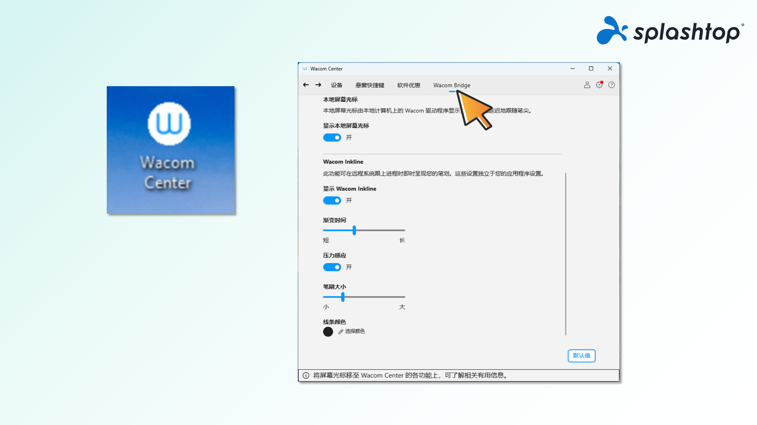 3. 如需确认连接或调整设置,打开控制端的 Wacom Center,进入【Wacom Bridge】标签页操作即可。