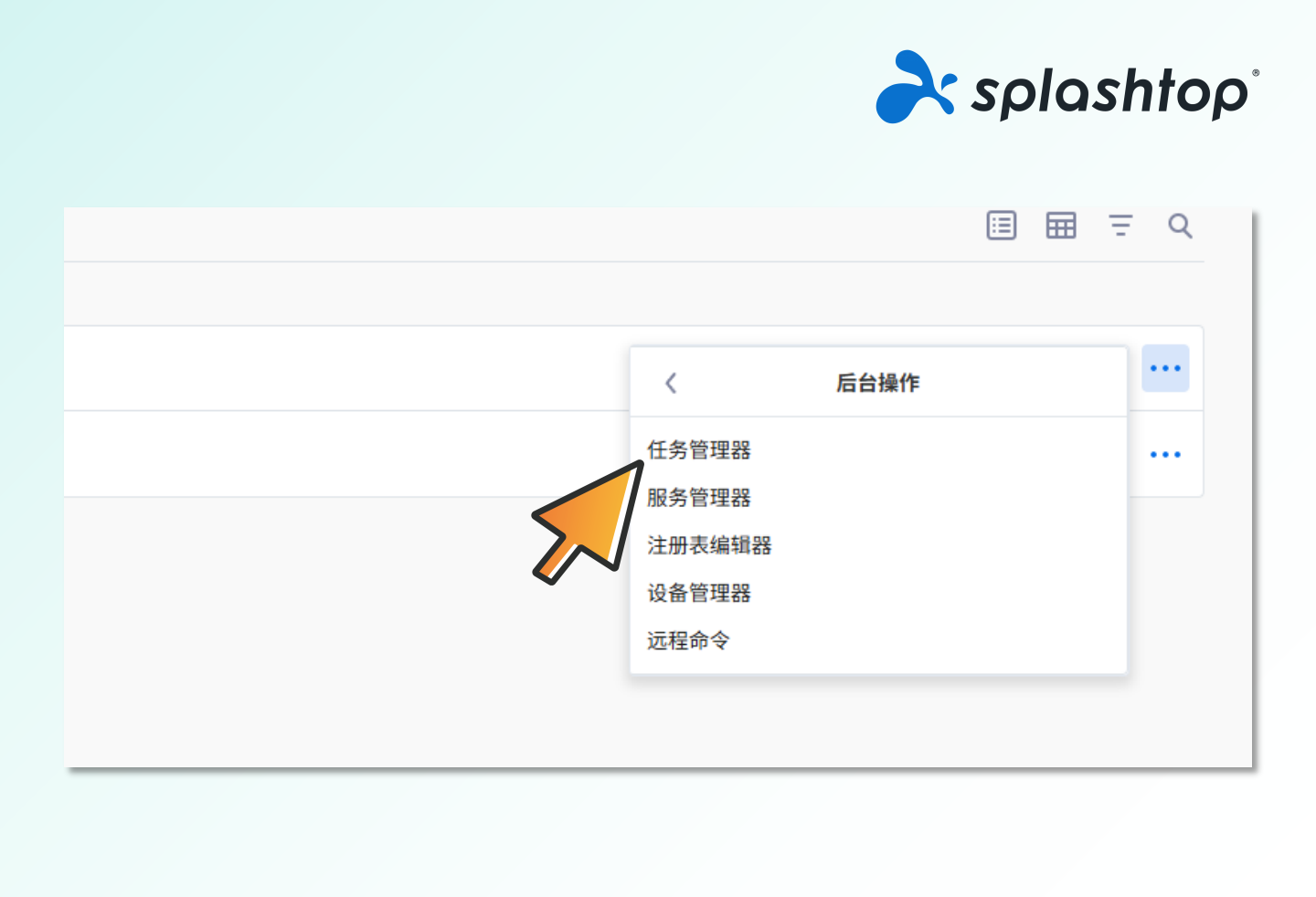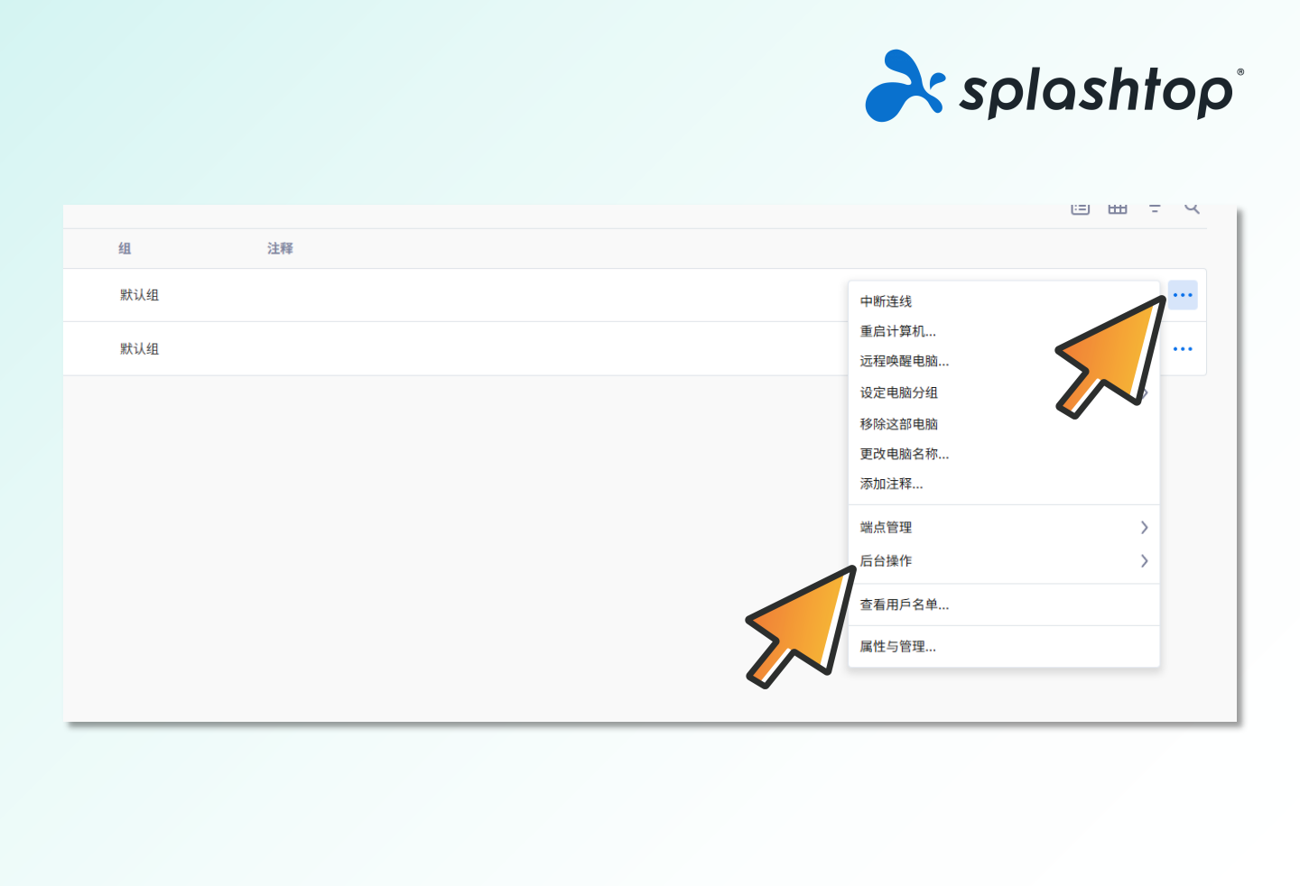 2.选择目标电脑,点击右侧的【...】图标,选择【后台操作】