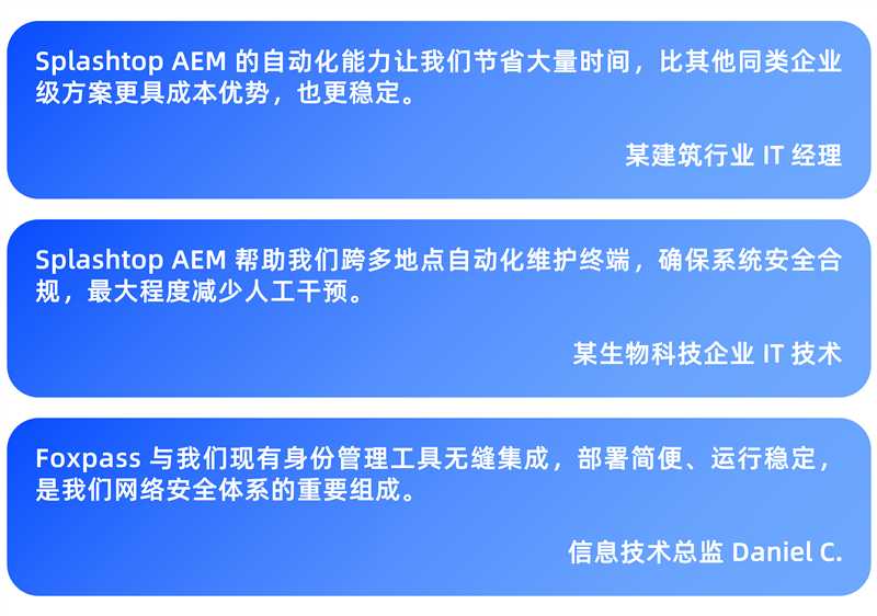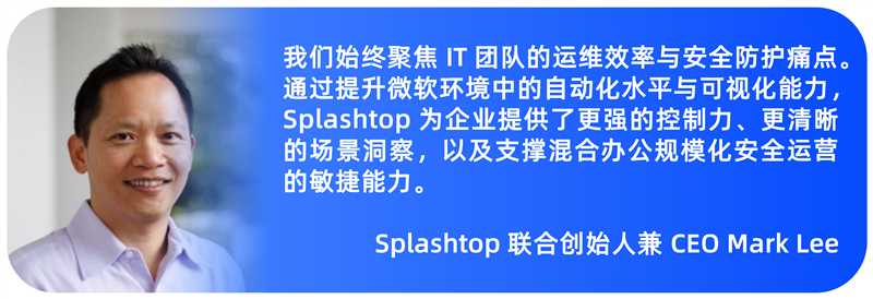 随着企业加速上云与混合办公模式的普及,IT 环境日益复杂。市场对简化零信任部署、强化混合环境安全的需求迫切。市场数据印证了这一趋势:自春季发布以来,已有42%的企业支持客户部署 Splashtop 的自动端点管理(AEM)方案;其云原生网络认证方案 Foxpass 在微软用户中的使用率也提升了35%。